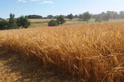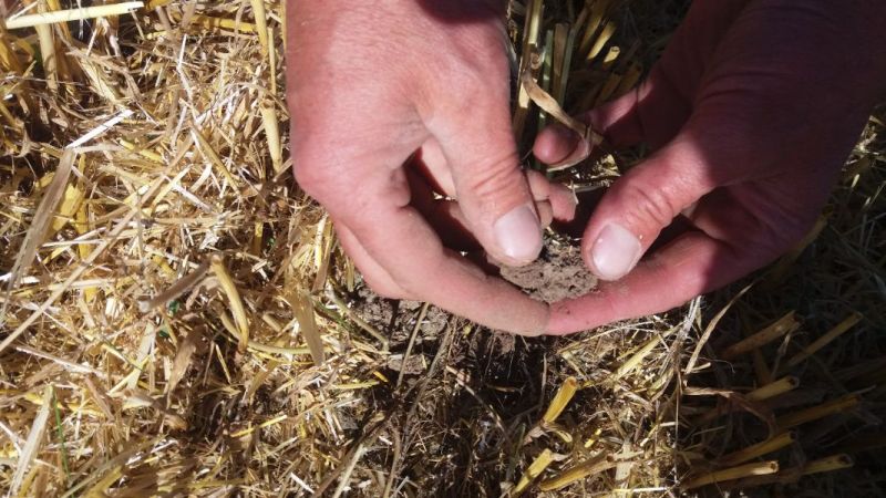 Heute haben wir unsere Gerste geerntet. Trotz der Trockenheit steht die Gerste gut. Wir haben eine Klee-Untersaat gesät, die die Gerste mit Stickstoff versorgt. Unglaublich: im Boden ist noch Feuchtigkeit. Der Boden ist Dank dem Klee krümmelig und locker. Bei gutem Ernte -Wetter wird die Gerste gedroschen. Vielleicht landet es bei uns als Graube auf dem Teller. Der Ertrag war gut. Wir haben ca. 4.5 to- 5 to pro Hektar geerntet. Das entspricht für dieses klimatisch schwierige Jahr, fast dem Ertrag der konventionellen Kollegen. Allerdings: ohne Pestizide!