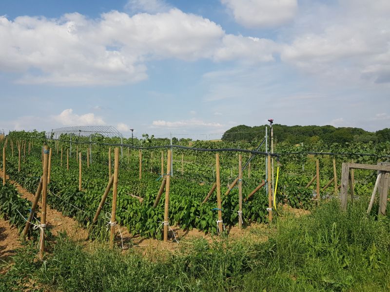 Seit diesem Jahr haben wir einen Market Gardening. Das ist ein Bereich, wo wir kleinflächig Gemüse anbauen. Unterteilt sind die Parzellen mit Zaunelementen, an denen Gemüse oder Blumen wachsen. Die Zäune sollen die starken Winde bei uns brechen. Auf den Parzellen wachsen Gemüsesorten, welche wir nur in kleinen Mengen verkaufen: Bohnen, Peperoni, Wassermelonen, Batate oder auch ein paar ganz besondere Seltenheiten wie die Luppa-Gurke.