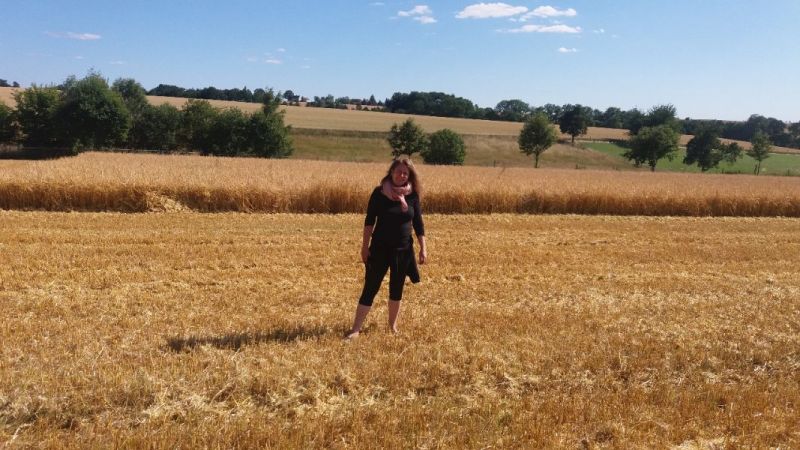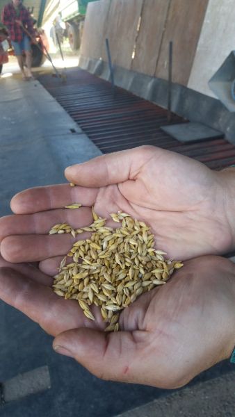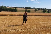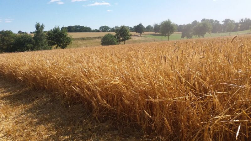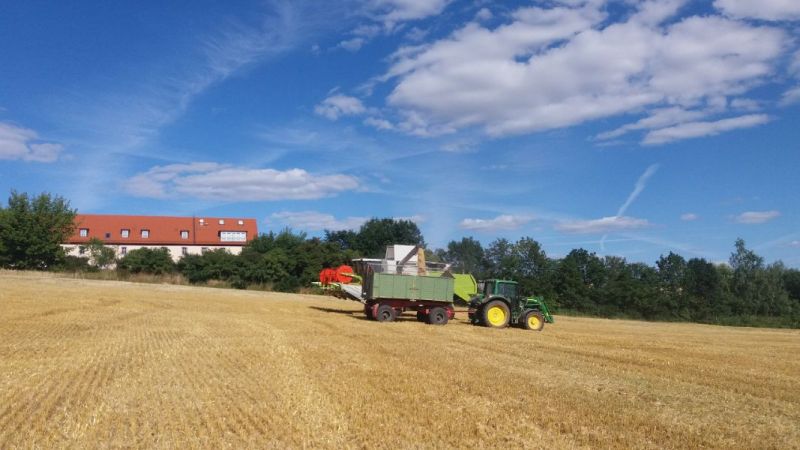 Heute haben wir unsere Gerste geerntet. Trotz der Trockenheit steht die Gerste gut. Wir haben eine Klee-Untersaat gesät, die die Gerste mit Stickstoff versorgt. Unglaublich: im Boden ist noch Feuchtigkeit. Der Boden ist Dank dem Klee krümmelig und locker. Bei gutem Ernte -Wetter wird die Gerste gedroschen. Vielleicht landet es bei uns als Graube auf dem Teller. Der Ertrag war gut. Wir haben ca. 4.5 to- 5 to pro Hektar geerntet. Das entspricht für dieses klimatisch schwierige Jahr, fast dem Ertrag der konventionellen Kollegen. Allerdings: ohne Pestizide!