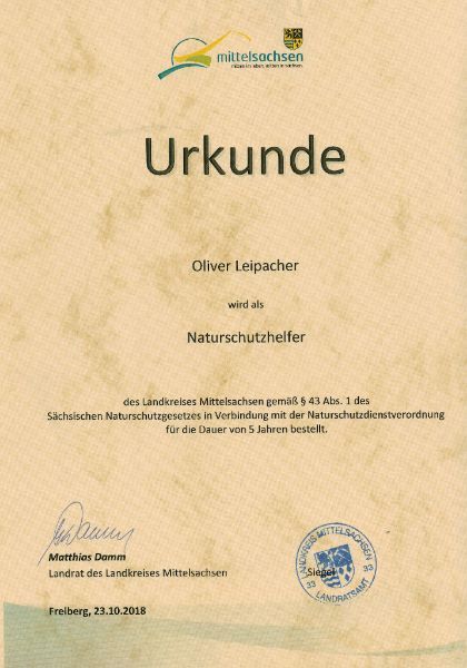Urkunde als Naturschutzhelfer